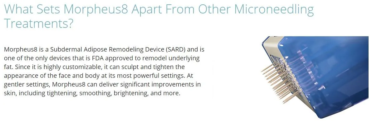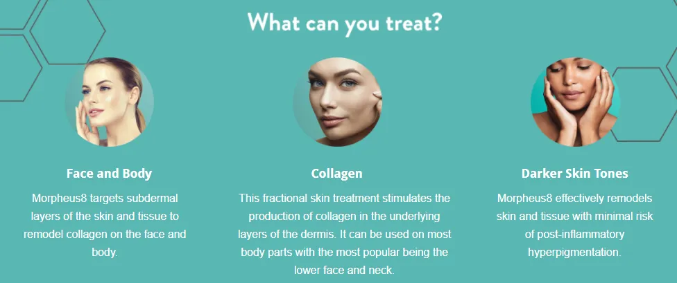 Morpheus8 targets subdermal layers of the skin and tissue to remodel collagen on the face and body.